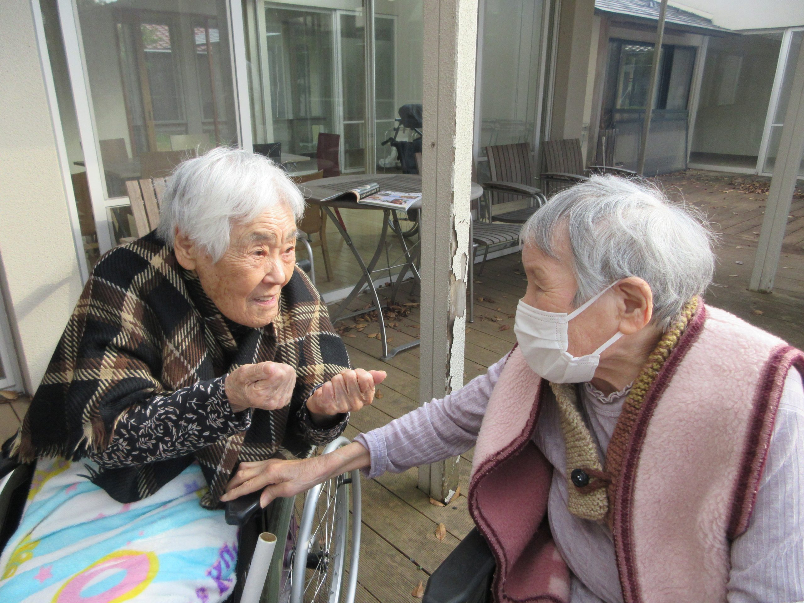 中庭のけやきの落ち葉の掃除をボランティアでしてくださった入居者さんに感謝を込めて、